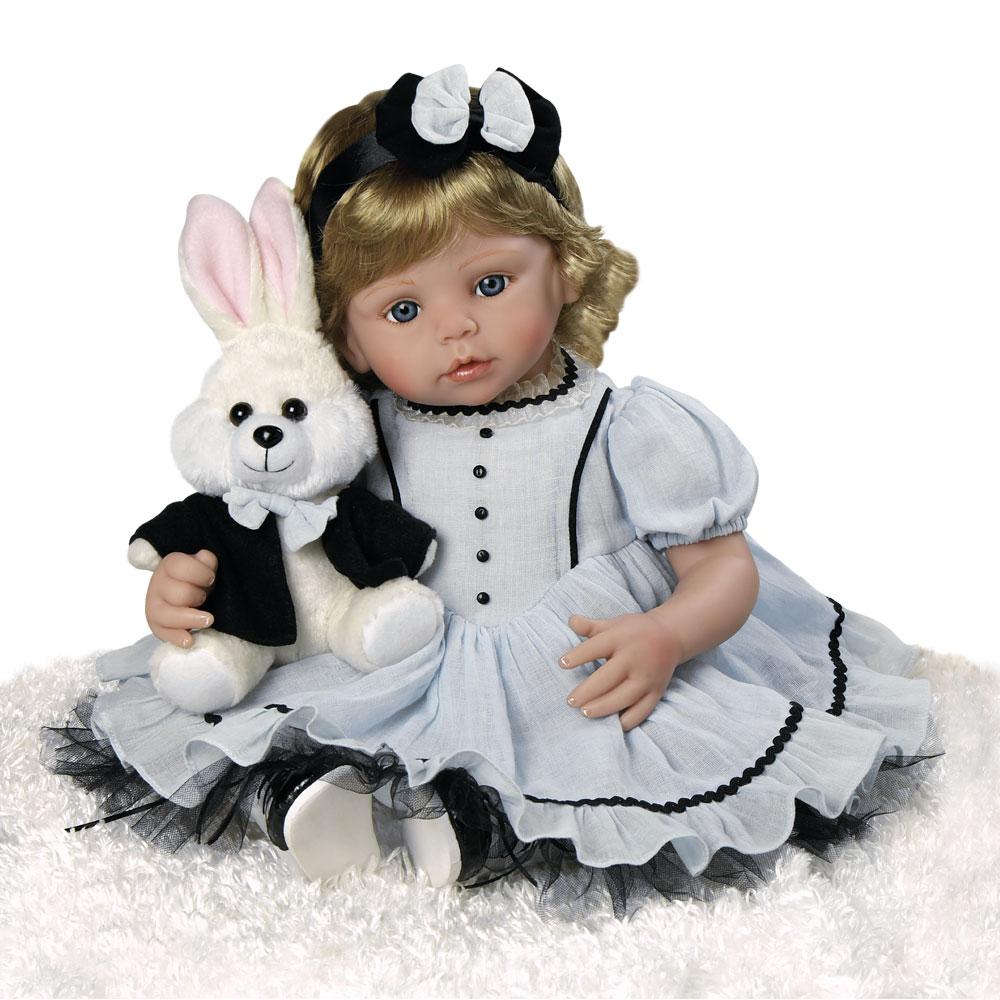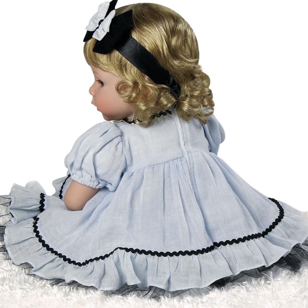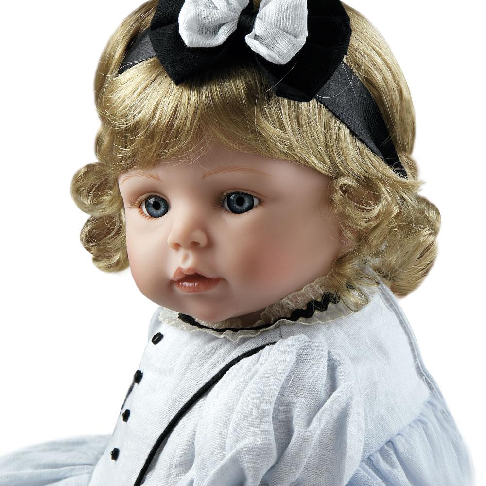 She is masterfully sculpted by world renowned Artist Mayra Garza in true to life detail. Alice is handcrafted in GentleTouch™ vinyl and she feels wonderfully lifelike with a weighted cloth body. Our GentleTouch™ vinyl is decadently soft and luxurious with the feel of real, lifelike baby-smooth skin, and is soft to the touch, being more resilient than silicone baby dolls. Alice comes with accessories shown, a numbered Certificate of Authenticity and an exquisite collector's box.