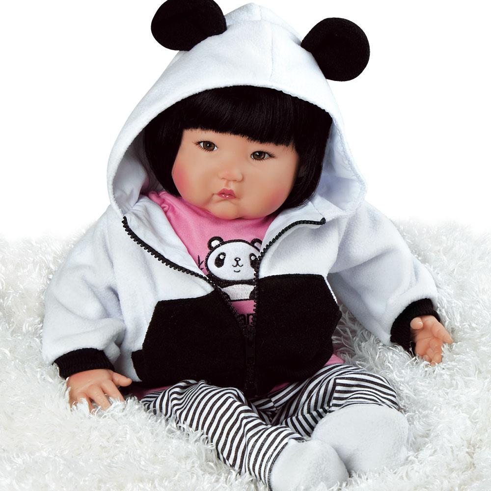 Bamboo is masterfully sculpted by Artist Ping Lau who is world-renowned for sculpting realistic Asian baby dolls in astonishing true to life detail. She is handcrafted in GentleTouch™ vinyl and feels wonderfully lifelike with a weighted cloth body. This realistic baby doll comes with accessories, her panda friend, a numbered Certificate of Authenticity and an exquisite collector's box. Intended for reborn doll collectors aged 14+