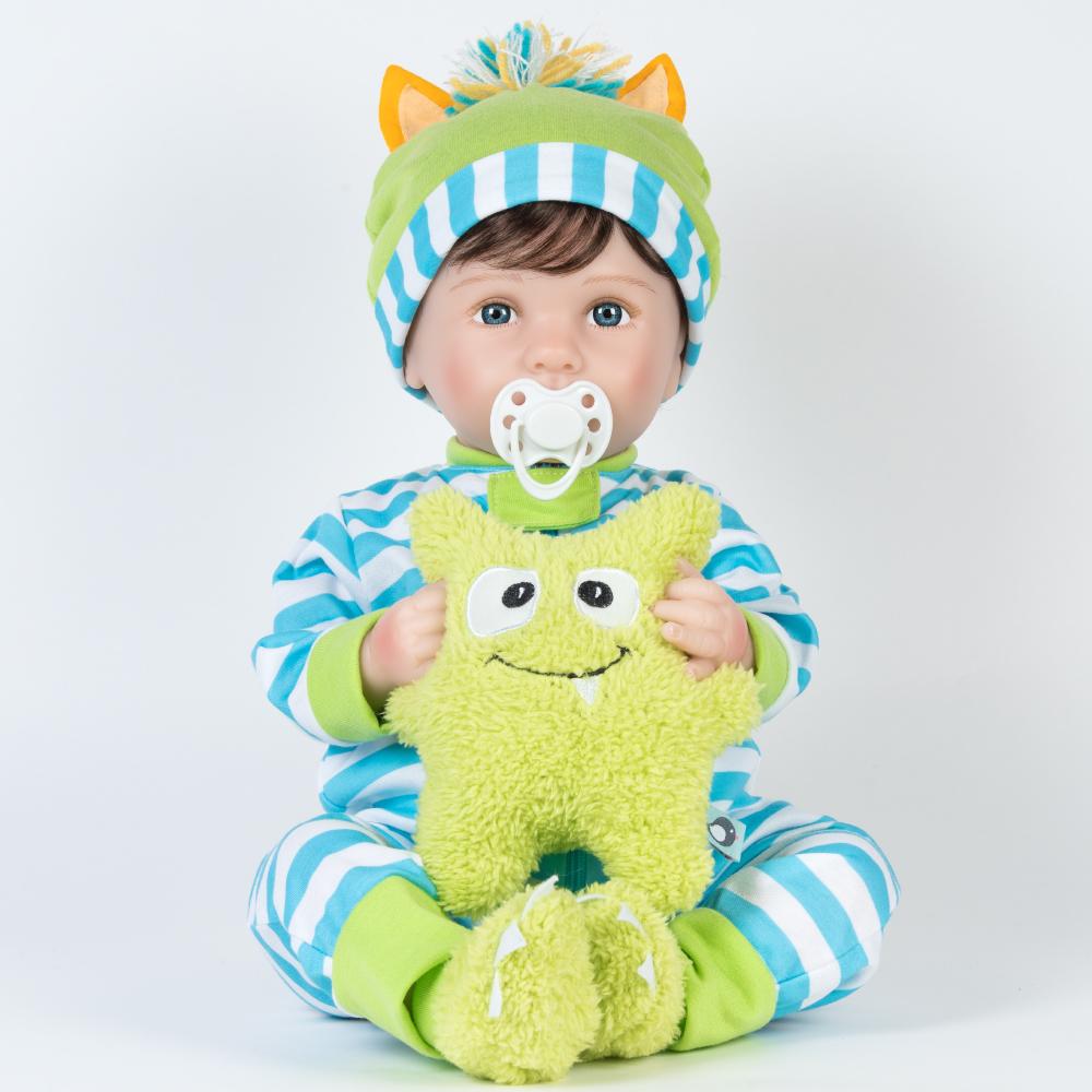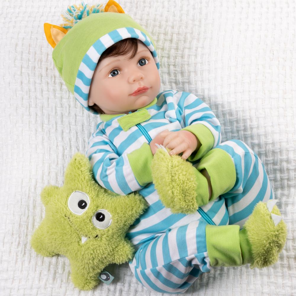 Cuddle Monster is skillfully handcrafted by world renowned artist Fiorenza Biancheri. Individually molded using our exclusive SoftTouch™ vinyl, his heavy weighted cloth body provides a wonderfully lifelike feel. This reborn-like toddler arrives inside a Collector’s Box and includes a numbered Certificate of Authenticity with the artist’s signature.