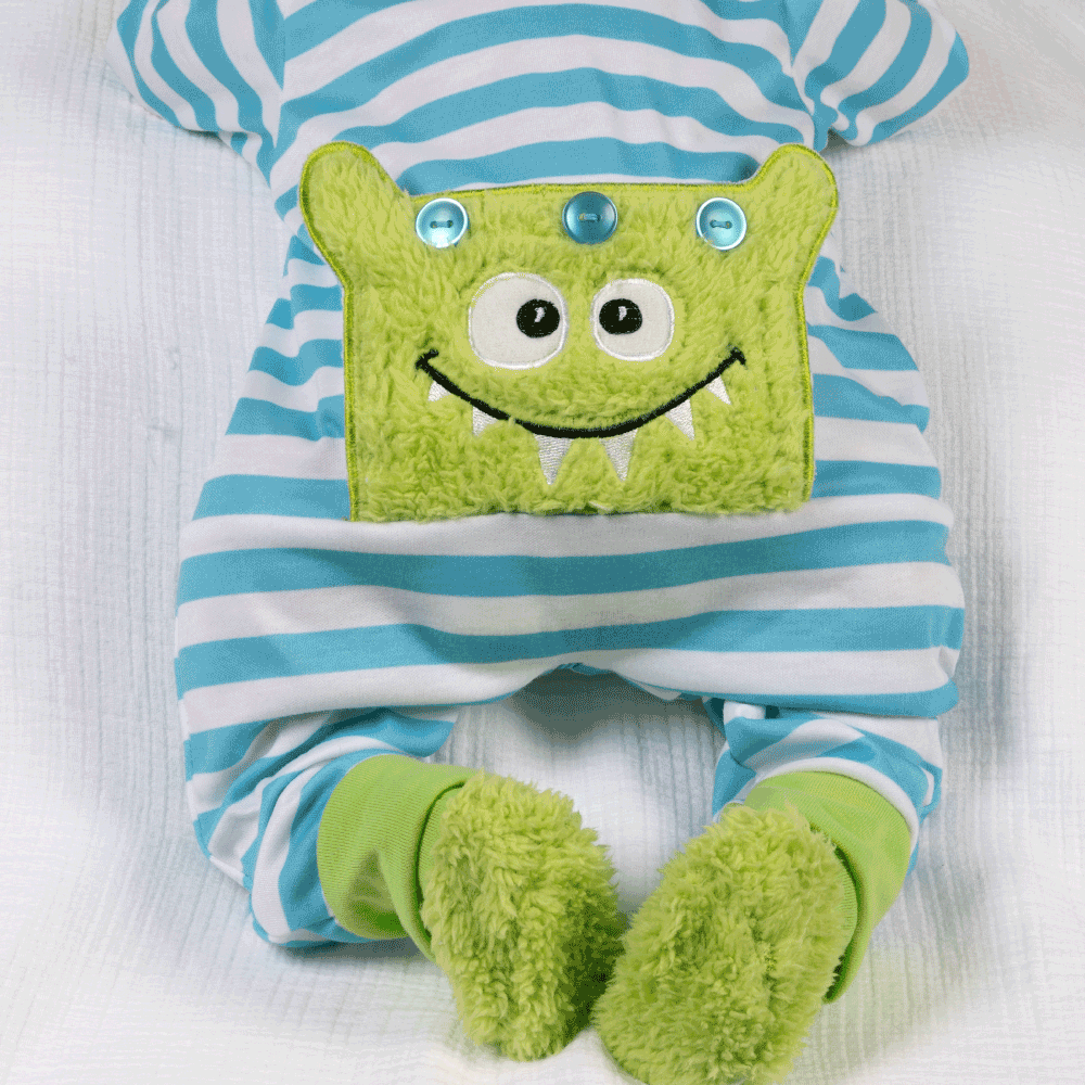 - Peek-a-boo! Peep in at his diaper via the cute monster-themed diaper flap!