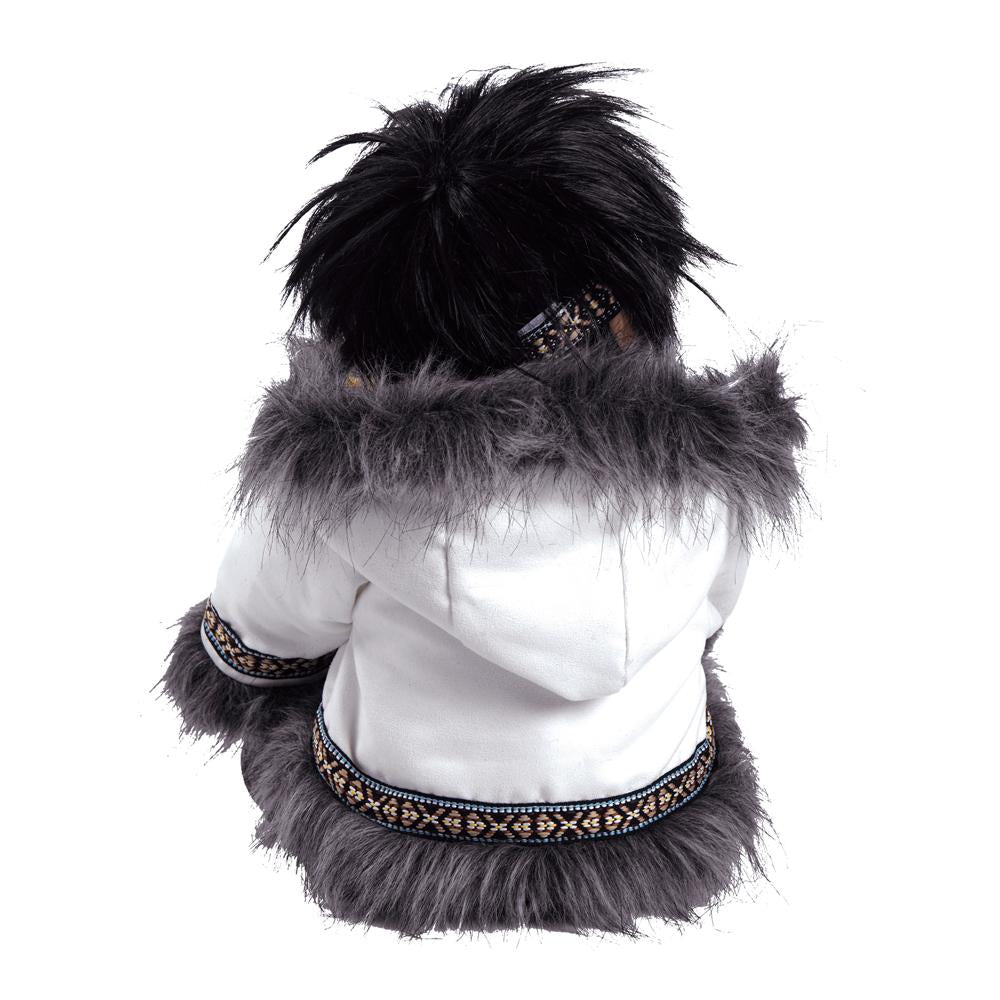 Kodi wears a faux fur-trimmed jacket with tribal print accents around the edges and has closures going up the front. It’s also lined with soft fleece to keep him warm and cuddly! A tribal printed headband is the perfect splash of color against his spikey jet black hair! Kodi also wears a sky blue ribbed turtleneck the perfectly complements his golden-brown skin tone. His pants are a soft corduroy material and he wears fur-trimmed suede shoes.