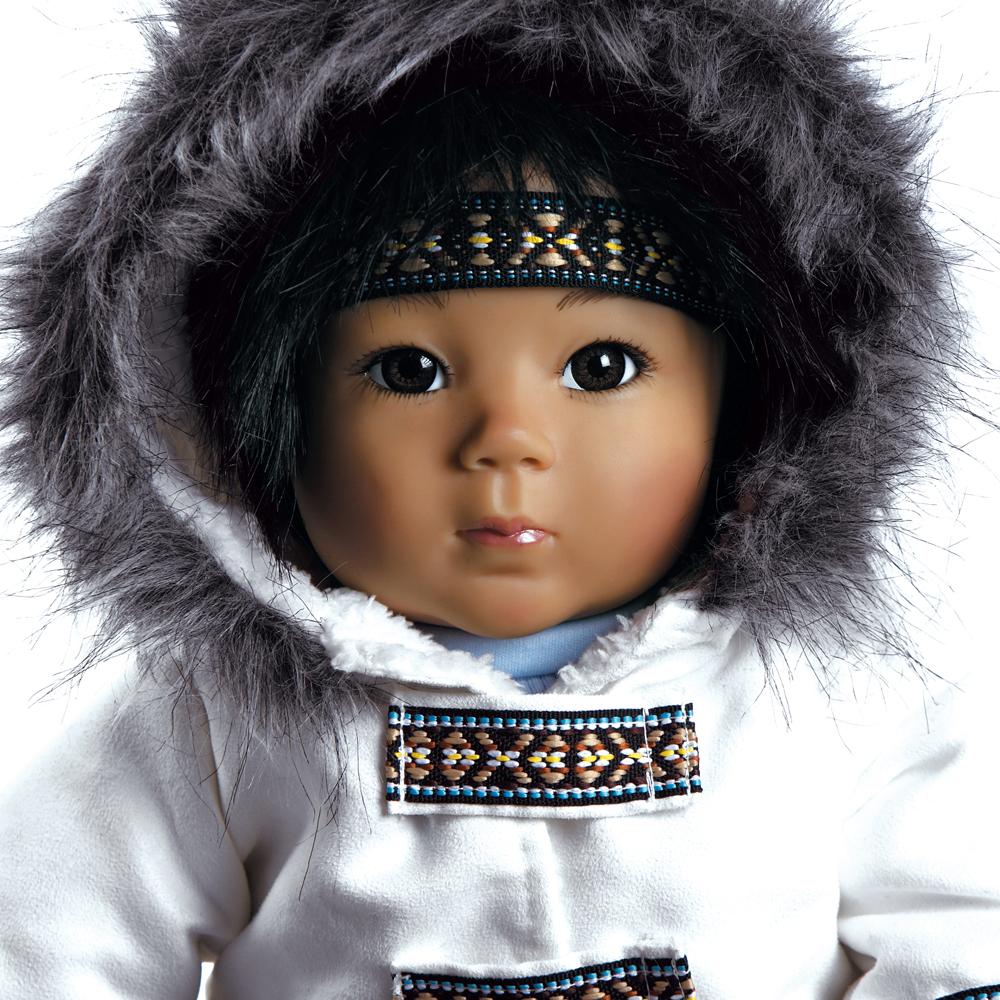 You’ll be tempted to smother “Kodi” with Eskimo kisses after seeing his adorable almond-shaped brown eyes peering up at you! Kodi’s little pout and adorable chin add to his playful look, just like a real little boy! His rosy cheeks let you know he’s been playing in the cold Alaskan snow all day!