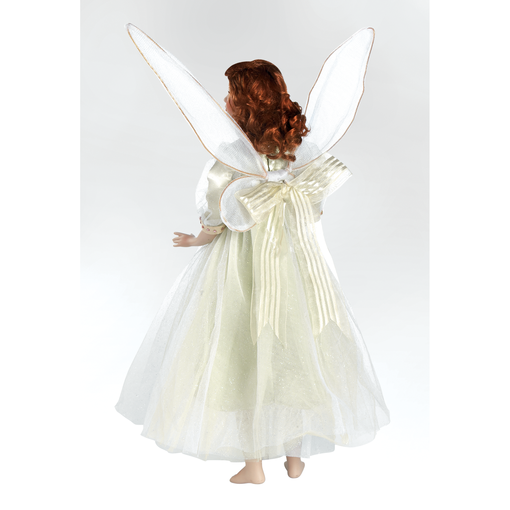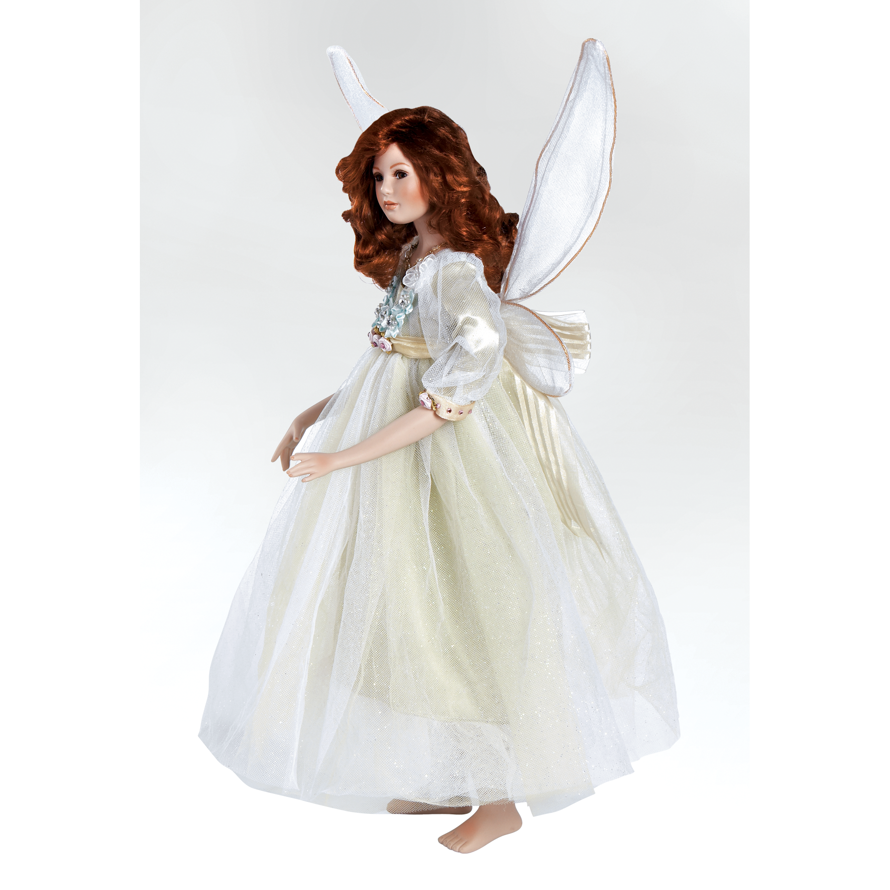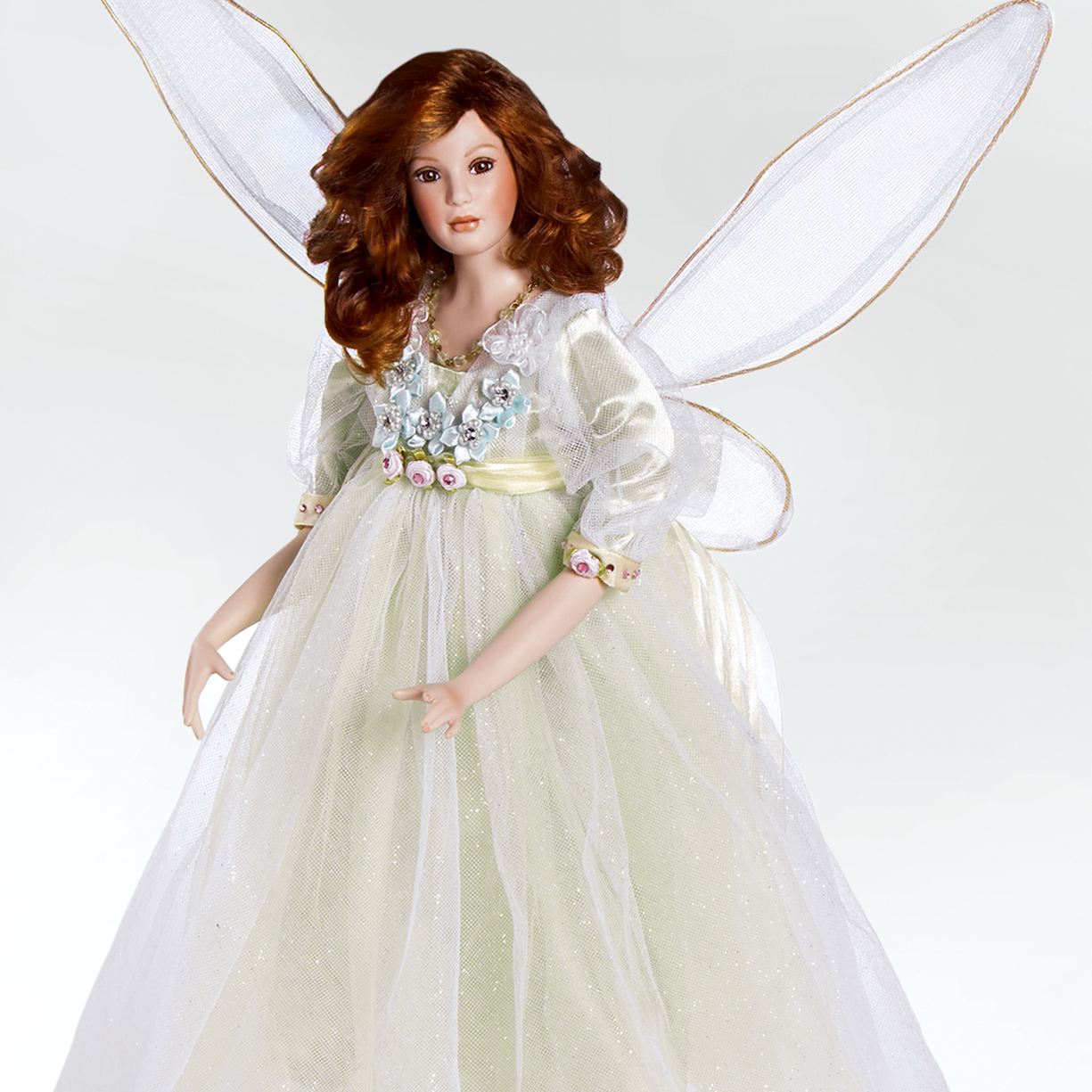 Gaia will make every other fairy doll be sent to the background as she is dressed in her light and soft pastel green gown with floral embellishments along the neckline, satin ribbon trims, and sheer posable wings that attach gently to the back of the costume. Perfect from head to toe, this beauty of a collectible porcelain doll is sent to you for your delight! So don’t wait, get her home now and bring a different kind of magic into your home!
