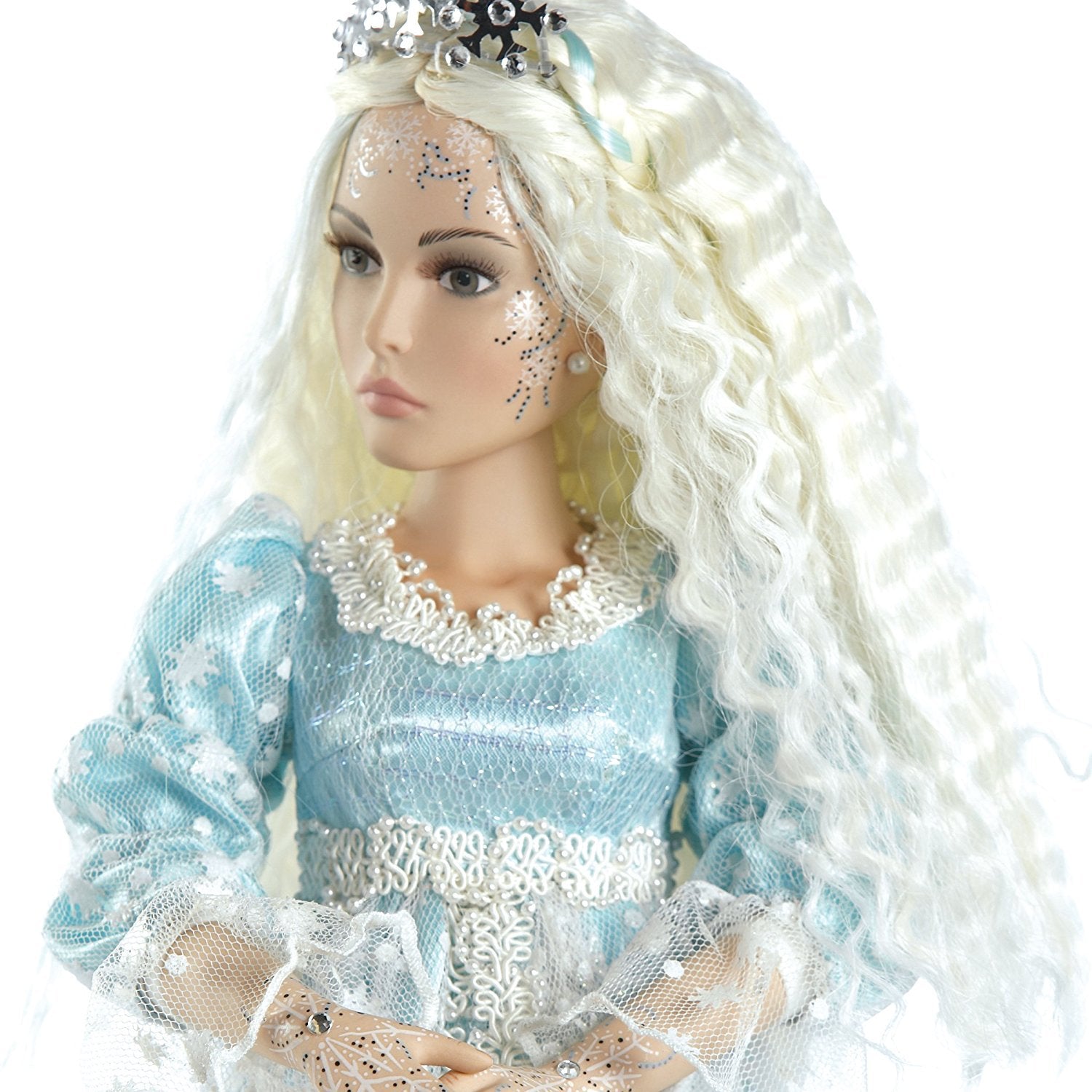 Sculpted in fine bisque porcelain with exquisite hand-painted details, she bares the marking of a true Ice Princess with hand-painted snowflakes along her cheekbones and dainty wrists. But she’s not as cold as they think; a glimpse of warmth can be seen in her soft nude lips and rosy cheeks.