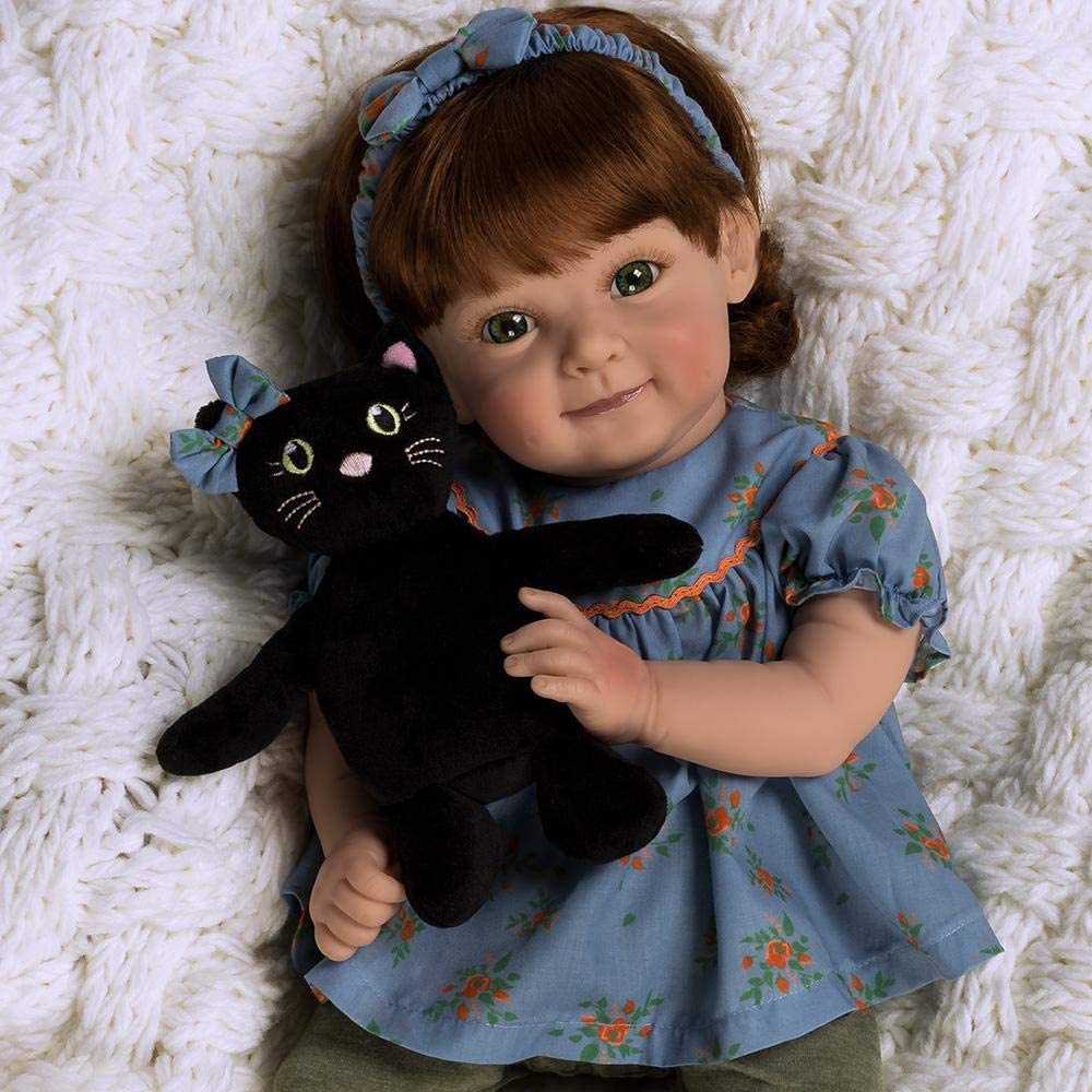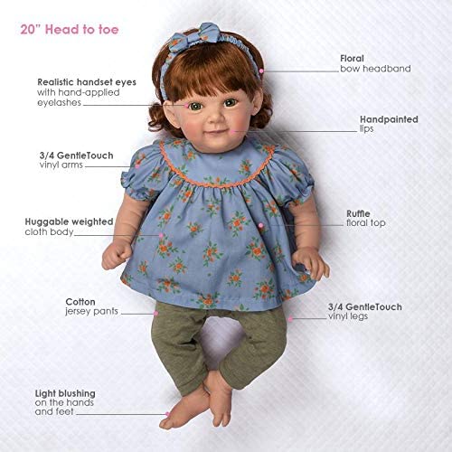 Pumpkin Spice is masterfully sculpted with true-to-life detail by renowned artist and doll sculptor Lauren Faith Jaimes, who specializes in creating these reborn toddlers. Her lifelike features are handcrafted in GentleTouch™ vinyl and a weighted soft cloth body makes her feel amazingly real. She comes with all the accessories shown above, a numbered Certificate of Authenticity, and an exquisite collector’s box.