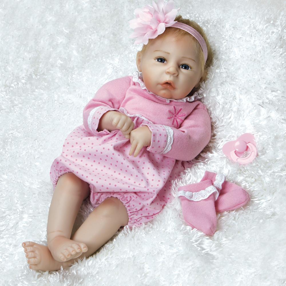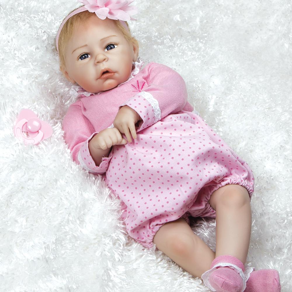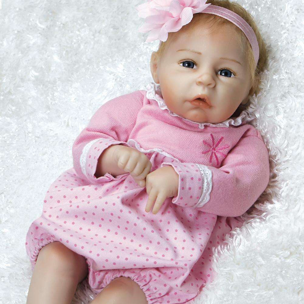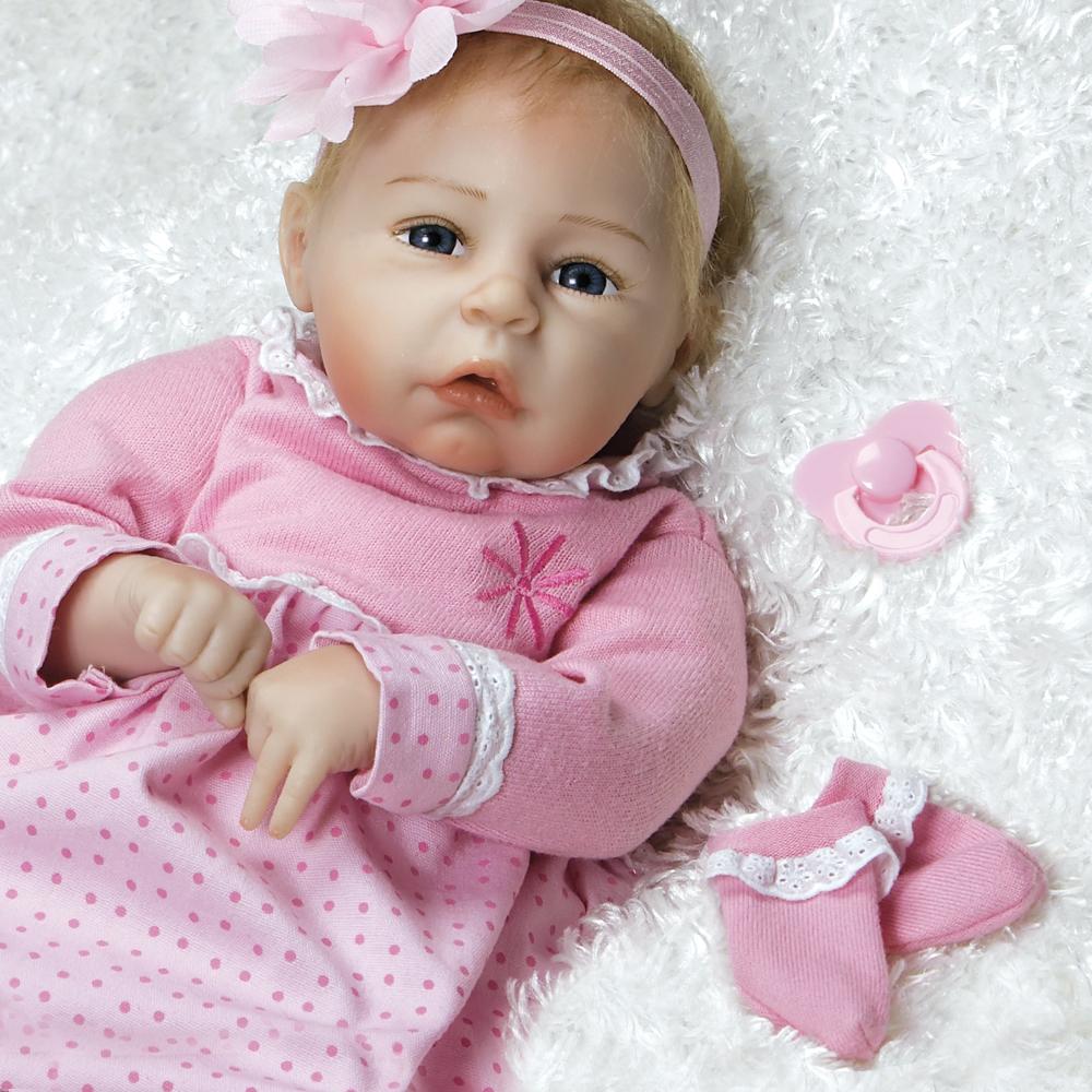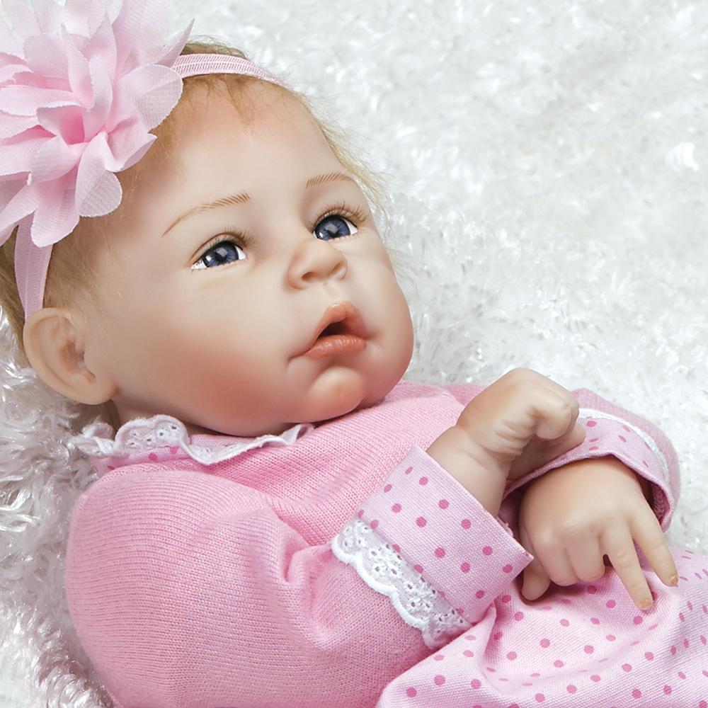 This real-life baby doll may be little, but she'll leave a big impression on you. Little Lara's baby blue eyes, open mouth and curled fingers will make you want to sweep her up for a long cuddle session. Her hand applied faux blonde mohair makes her appear even more realistic and lifelike like a reborn baby girl, highlighted with an adorable oversized flower headband. Her pink butterfly pacifier fits in her mouth to quiet her if she gets fussy!