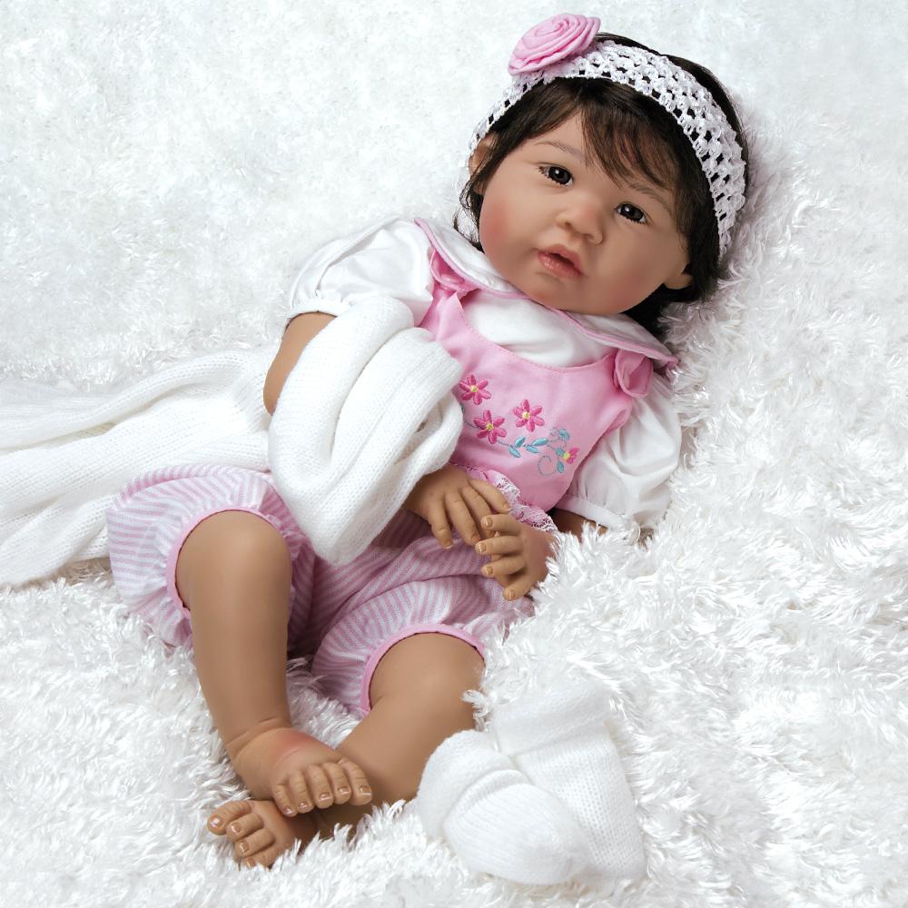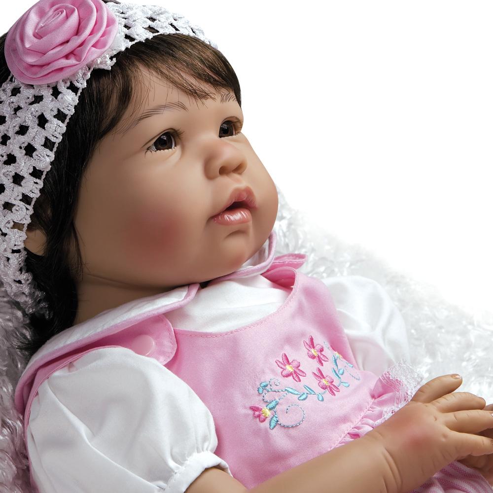 Sakura is wonderfully sculpted by awarded doll Artist Jannie de Lange in true to life detail, for a truly life like doll. She is handcrafted in GentleTouch™ vinyl with magnificently realistic features and a weighted cloth body. This Asian doll comes with all of the items pictured, a numbered Certificate of Authenticity and a collector's box.