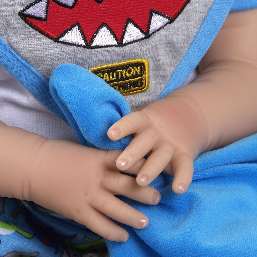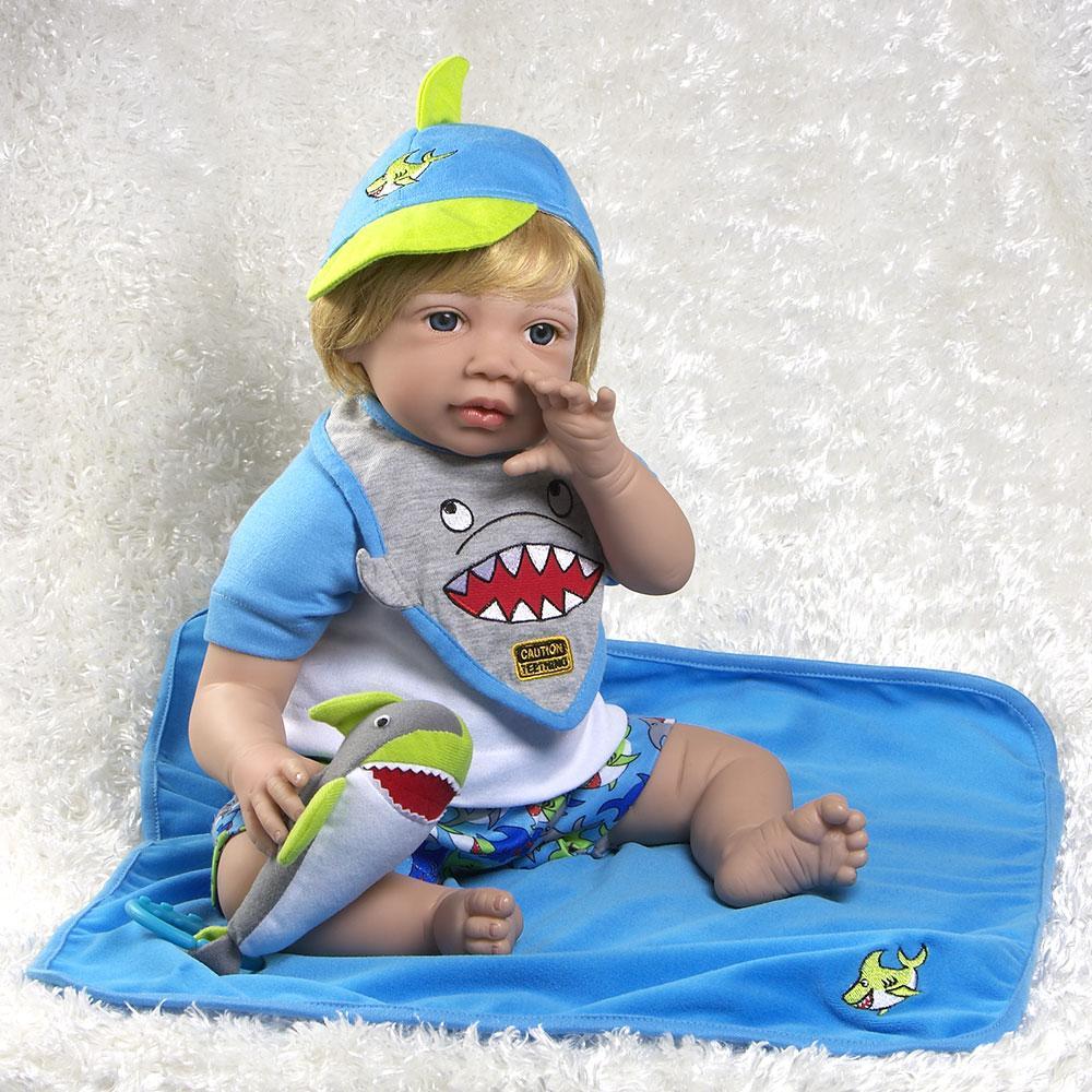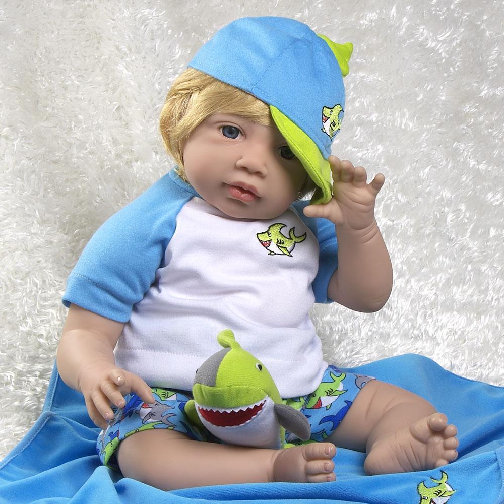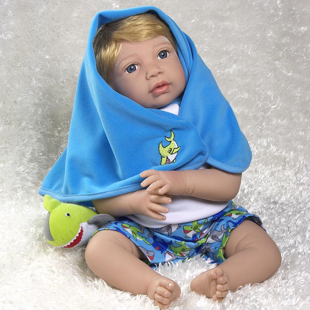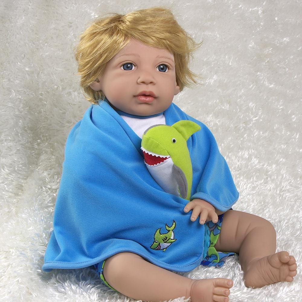 This fish out of water has beachy blond hair and is crafted from our GentleTouch vinyl for a huggable softness that you can’t find anywhere else. He is intricately detailed with handset eyes, handpainted fingernails, and blushing added to provide a lifelike appearance, like a reborn toddler.