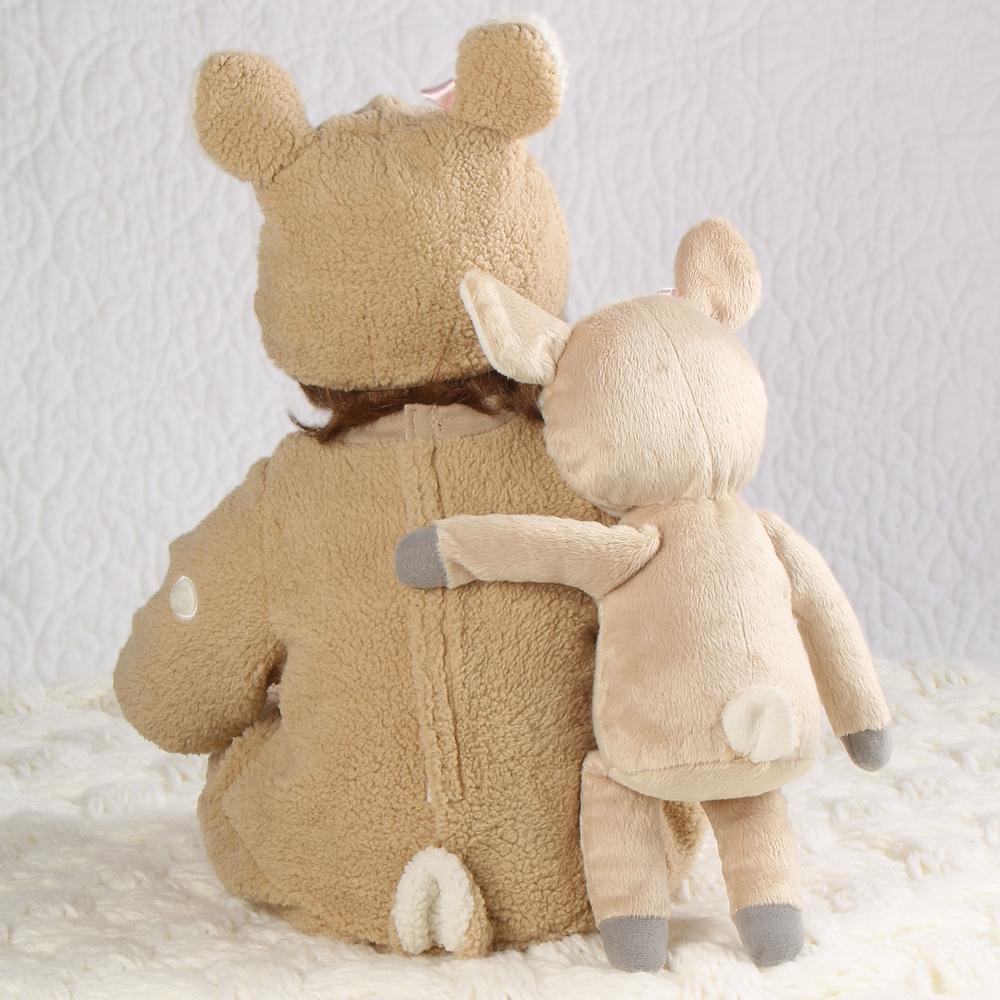 You’ll “fawn” all over this new doll! This sweet little girl is dressed in a fawn sleeper, with coordinating “Dearly Loved” onesie underneath. Her little forest friend has a matching bow and is her close companion on her woodland adventures, so she’ll never have to go “stag!”