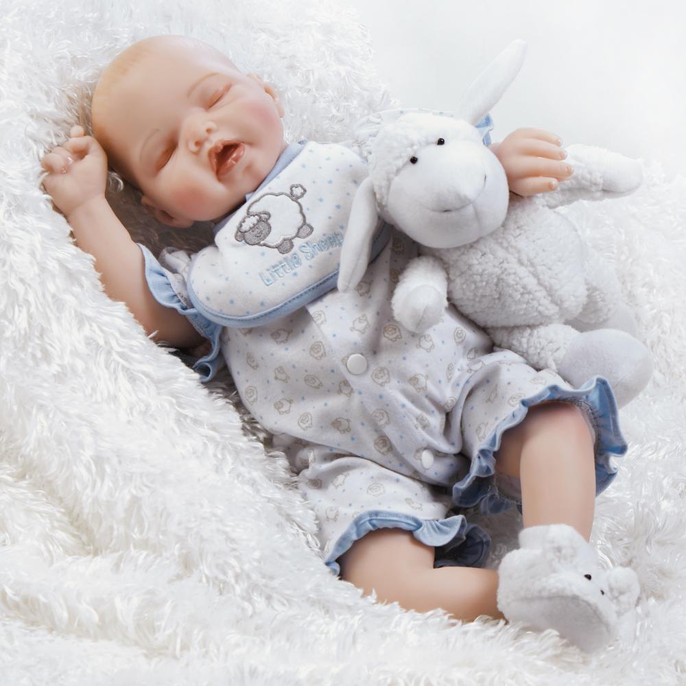 Sweet Dreams Mary is a wonderfully lifelike newborn that looks real, with a half-open mouth, tiny chin dimple and slight indentation under her closed eyes. This little darling is weighted for the most realistic feeling embrace as well. She also features hand-painted hair and blushing along her cheeks.