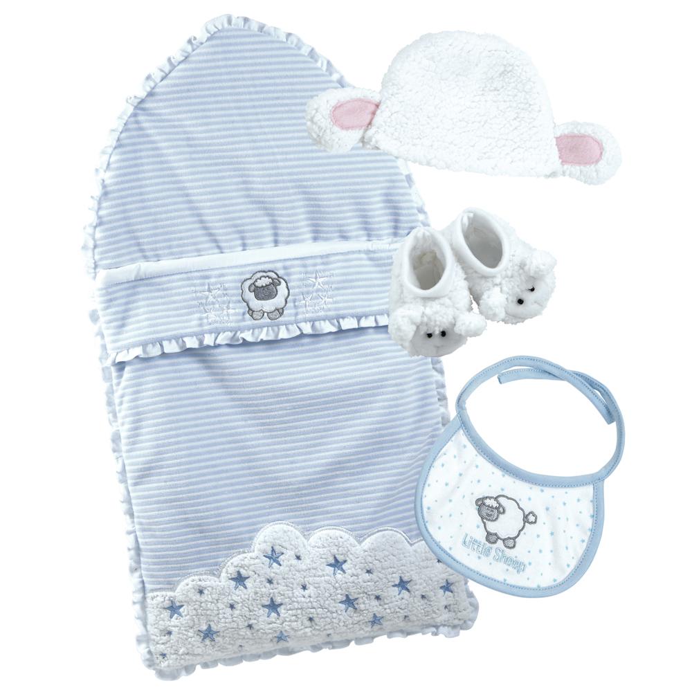 This realistic newborn baby doll includes everything you need to drift off into dreamland, including an adorable 3D lamb eared beanie, embroidered little sheep polka dot bib and striped blue sleeping bag embroidered with stars and fleece cloud accents. The best part is she comes with a fleece lamb friend who sings her a soft “Mary Had a Little Lamb” lullaby whenever the string it pulled.