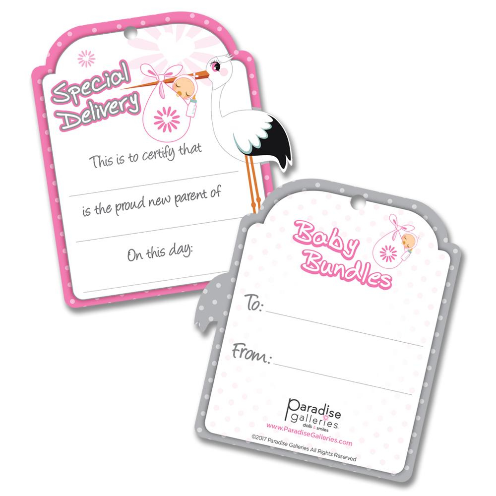 You’ll love Stars more than the moon and the stars with his/her beautiful dark skin tone, twinkling brown handset eyes with hand-painted eyelashes and beaming smile showing off kissable glossy hand-painted lips. This black baby doll sparkles bright with a head full of soft and curly black faux mohair, hand-painted finger and toenails with light blushing on the hands and feet. Reaching for the Stars' head, arms and legs are made of spectacularly soft and lifelike FlexTouch™ vinyl with a weighted cloth body for even more added realism. Star's celestial ensemble includes a real plastic diaper, a sweet gray and white striped cap, white cotton onesie that reads “Reaching for the Stars” in silvery glitter letters, and a white cushion soft receiving blanket splattered with tiny gray stars. Reaching for the Stars also comes with a teeny tiny customizable hospital bracelet where you can fill in her gender, length and weight, as well as a customizable birth certificate and Special Delivery gift tag.